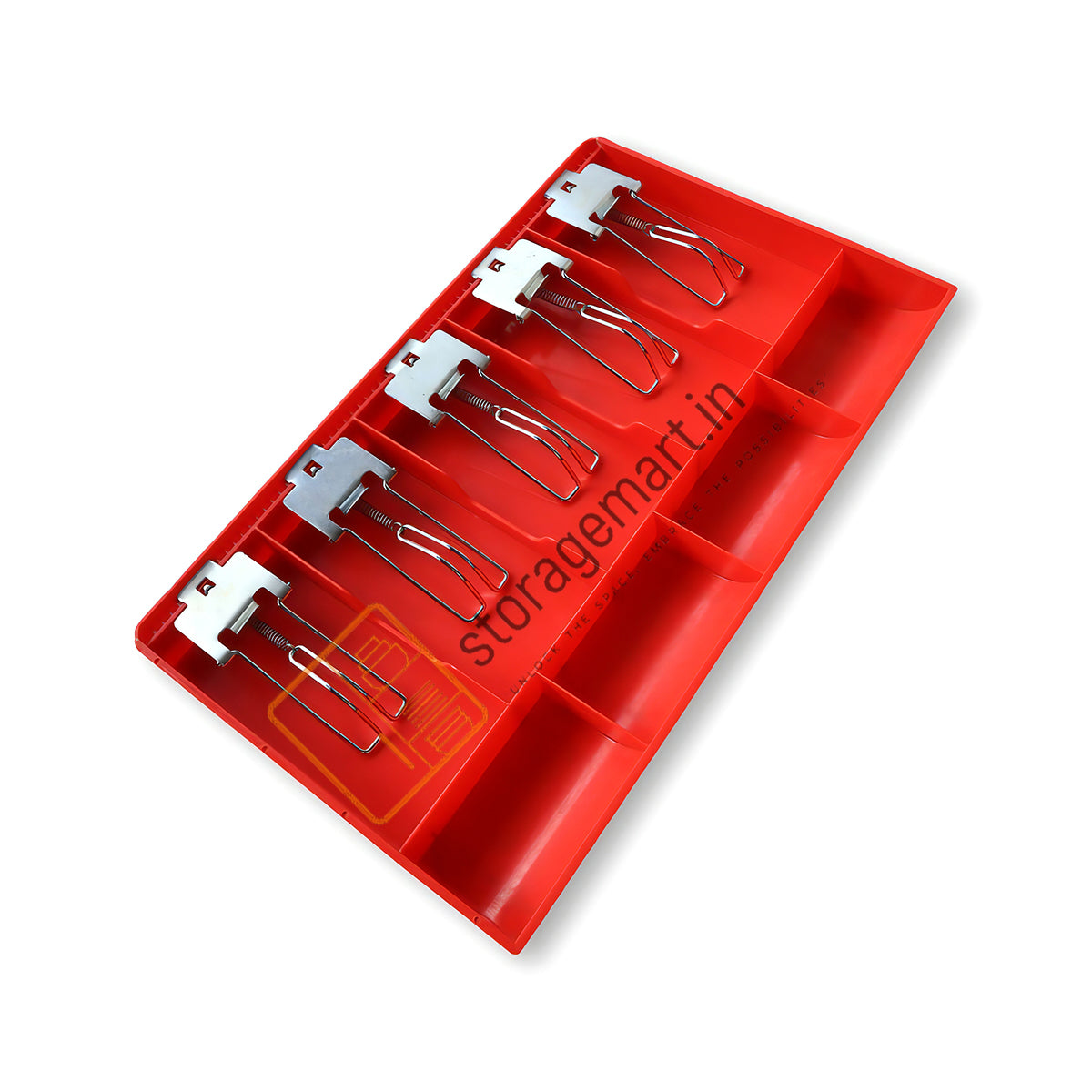 StorageMart ABS Cash Drawer, 5 Cash and 4 Coin Compartment, Cashier Storage Safe Box | Metal Clip | 40.5 X 24.5X 3.5 cm | Red